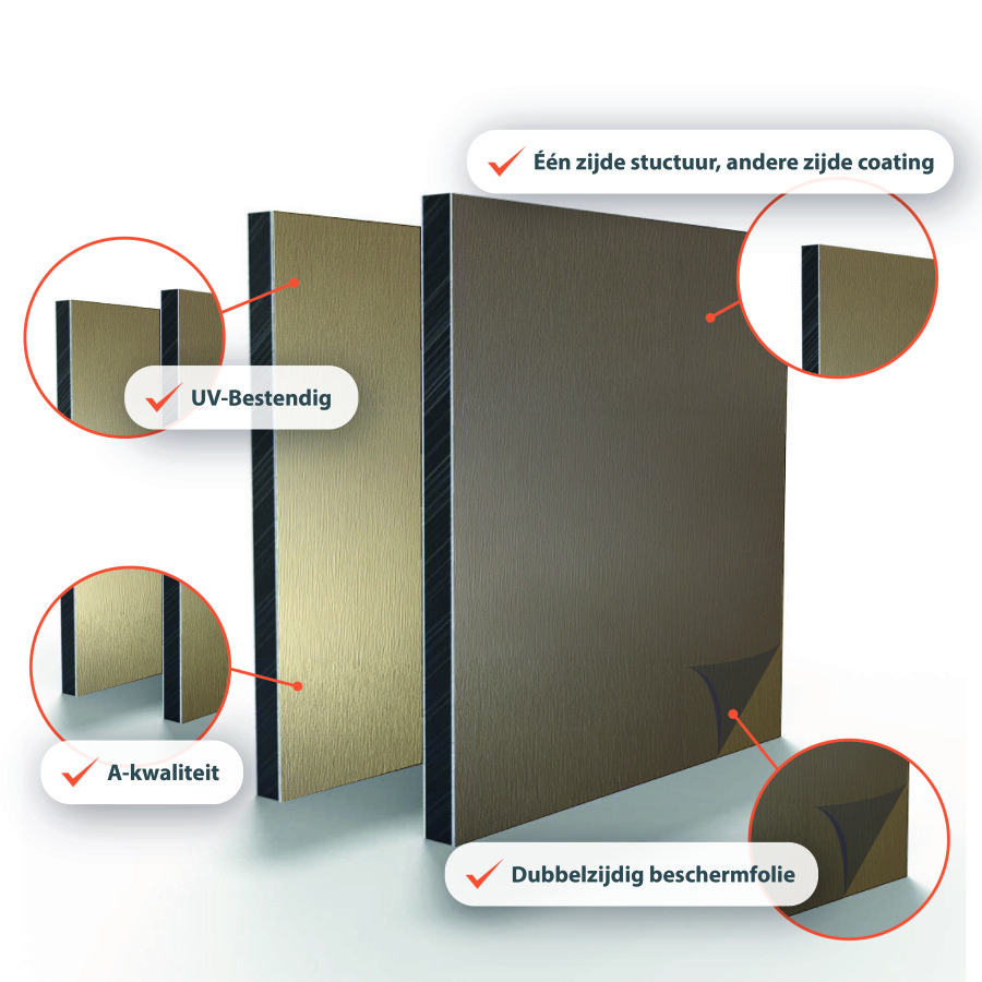 ALU PE Plaat Brushed Champagne/wit 3MM