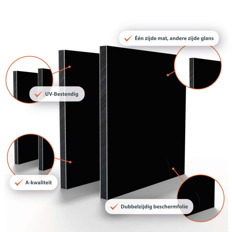 ALU PE Plaat Zwart/zw Ral 9005 gl/mat 3MM