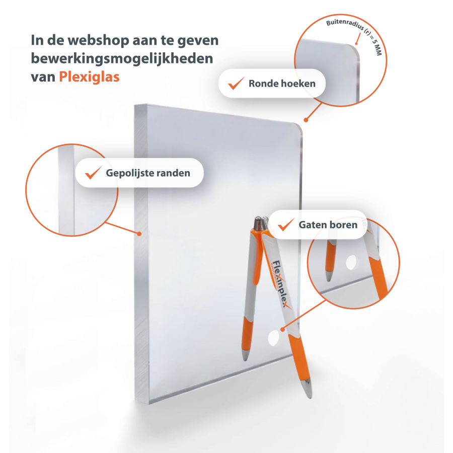 Acrylaat (Plexiglas®) spiegel is dé lichte en onbreekbare vervanger van glas. Tot wel 25 keer slagvaster en de helft lichter dan glas. Perfect voor toepassingen waar gewicht of veiligheid belangrijk is, zoals interieurs of decoratieve projecten.