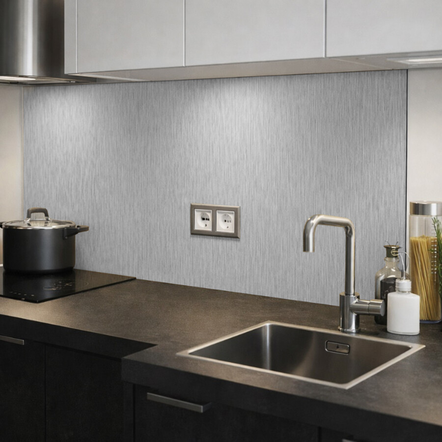 Spatscherm zonder boren Zilver (Butlerfinish) 3 mm
